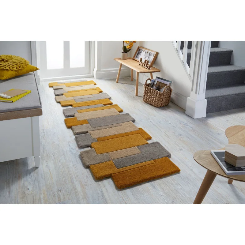 Dywan Wełniany Abstract Collage Ochre Natural – widok ogólny – wzór geometryczny