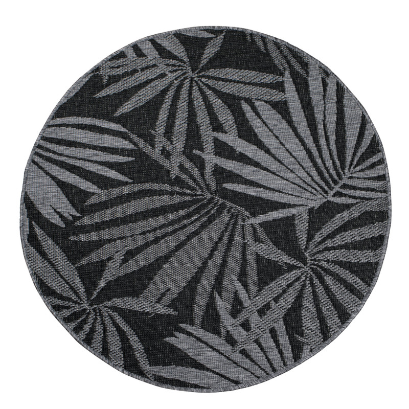 Okrągły dywan dwustronny DUO 57710 Antracyt – roślinny wzór do wnętrz i na zewnątrz