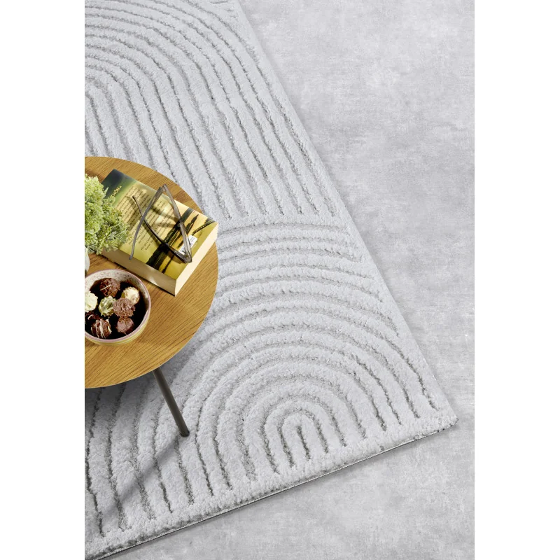 Subtelny wzór z efektem 3D sprawia, że dywan staje się centralnym punktem wnętrza, jednocześnie nie przytłaczając go.