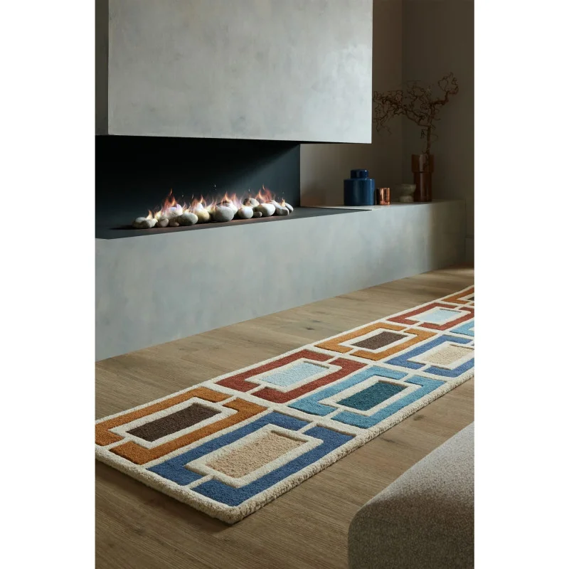Dywan Wełniany illusion Retro Blocks Niebieski/Wielokolorowy – widok ogólny – wzór geometryczny