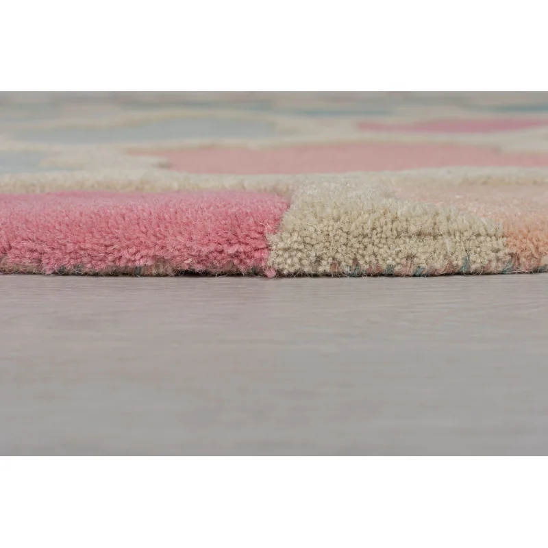 Dodaj niepowtarzalny akcent do swojego wnętrza dzięki Ekskluzywnemu Okrągłemu Dywanowi Wełnianemu Illusion Rosella Pink Blue. Zamów teraz, aby cieszyć się pięknem i komfortem, jakie ten dywan przyniesie do Twojego domu.