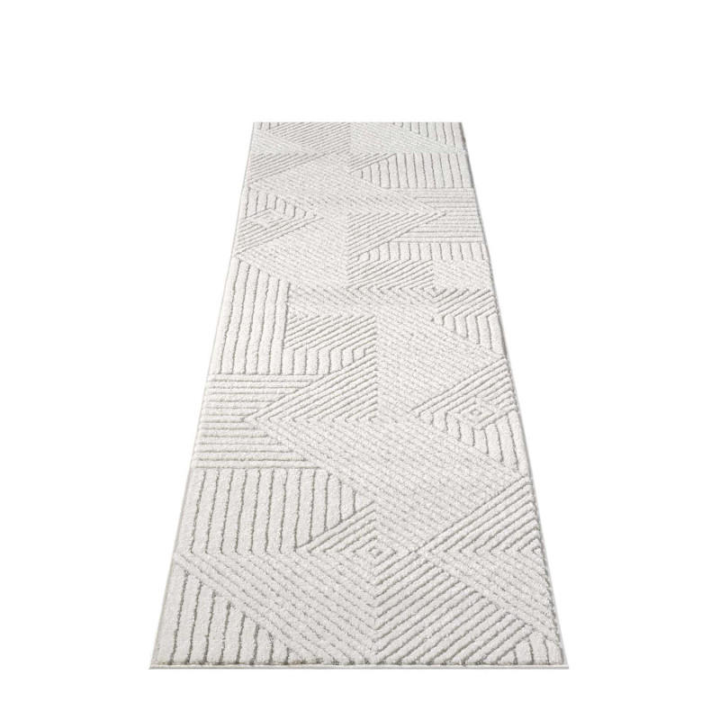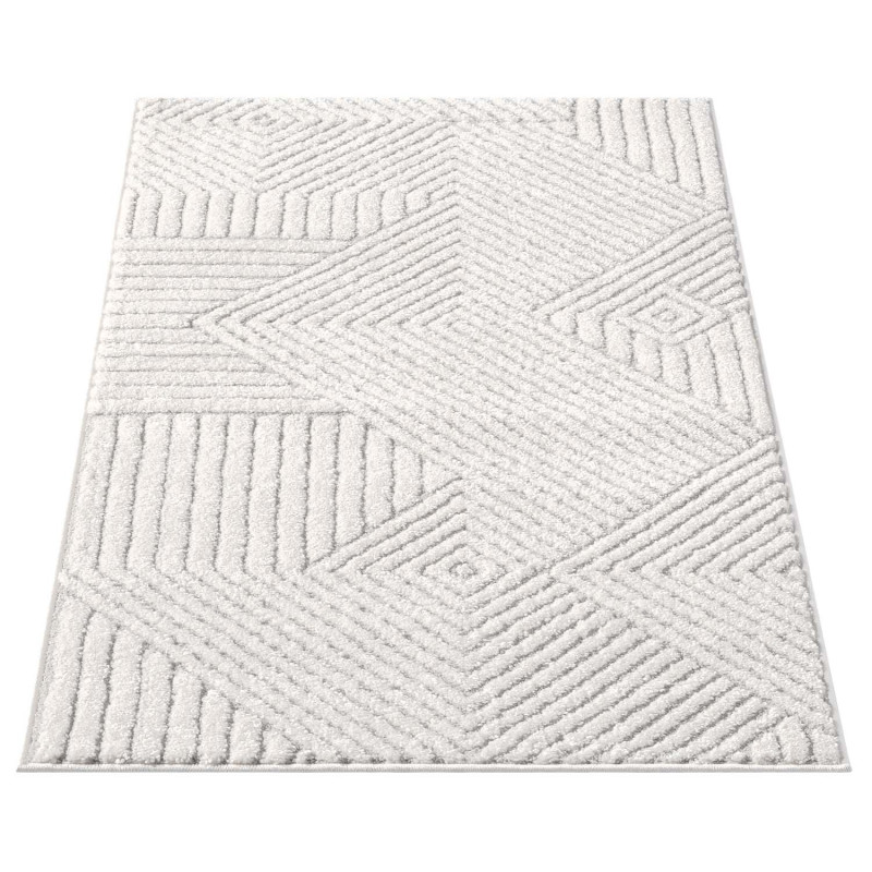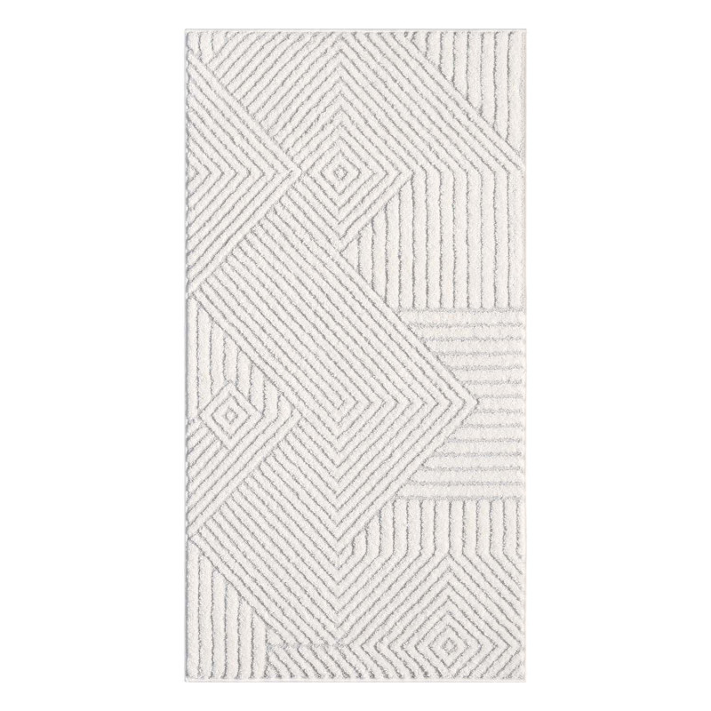 Nowoczesny dywan Lounia 6320 w odcieniach szarości i kremu z geometrycznymi liniami. Minimalistyczny styl i miękkie, krótkie runo – idealny do nowoczesnych wnętrz.