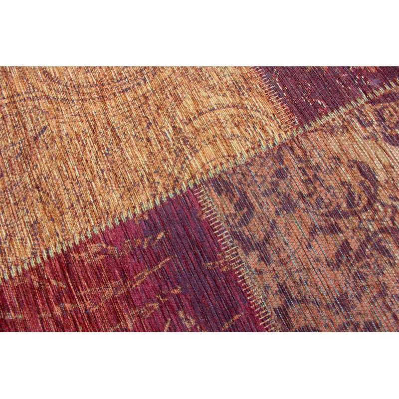 Idealny do salonu, sypialni lub pokoju dziennego. Jego wyjątkowy wzór składa się z różnorodnych kwadratowych fragmentów, tworzących harmonijną kompozycję. Patchworkowe elementy w różnych odcieniach terrakoty, brązu i kremowego nadają dywanowi unikalny wygląd.