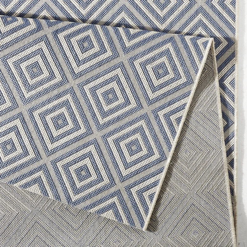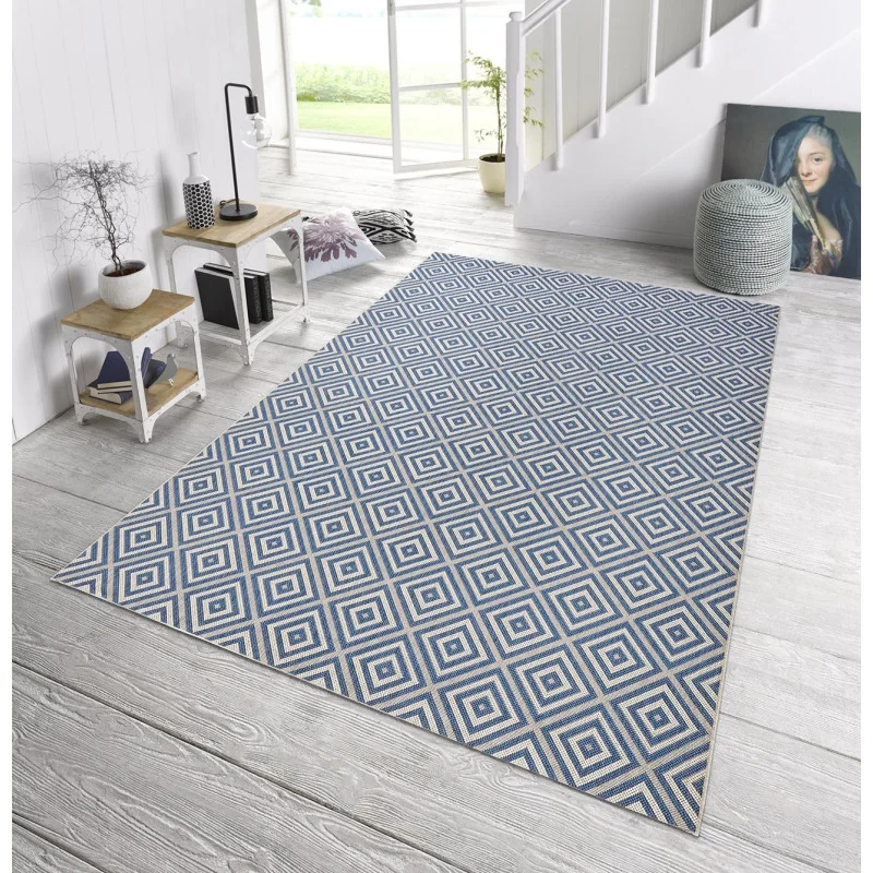 Dywan zewnętrzny Meadow 102468 Blue to elegancki i wytrzymały wybór. Ten dywan został specjalnie zaprojektowany do użytku na zewnątrz, idealnie nadaje się jako podłoga w ogrodzie, na tarasie czy na werandzie.