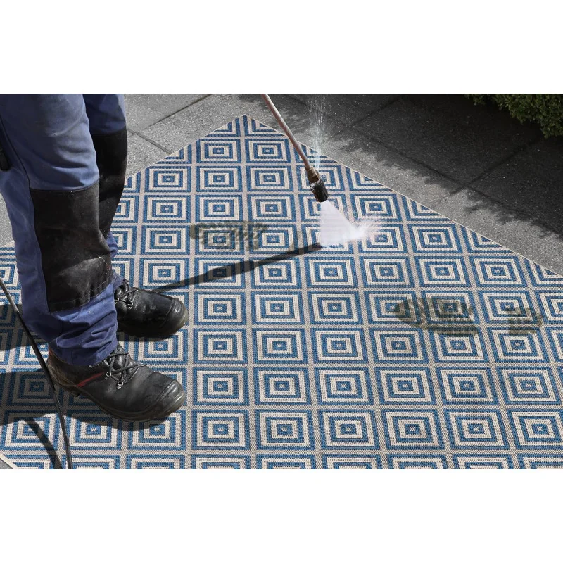 Dzięki swojej płaskiej strukturze, dywan Meadow 102468 Blue jest łatwy w czyszczeniu. Może być również prany, co ułatwia utrzymanie go w czystości. Dodatkowo, jest odporny na warunki atmosferyczne, dzięki czemu doskonale sprawdza się na zewnątrz.