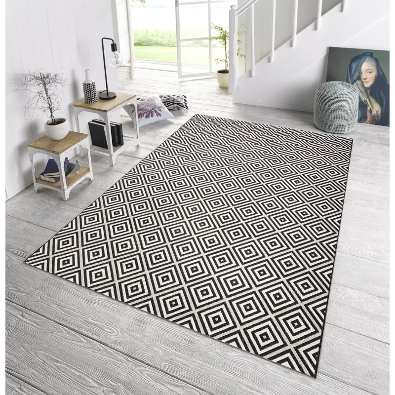 Dywan Zewnętrzny / Płasko Tkany Meadow 102470 Czarny – widok ogólny – wzór skandynawski
