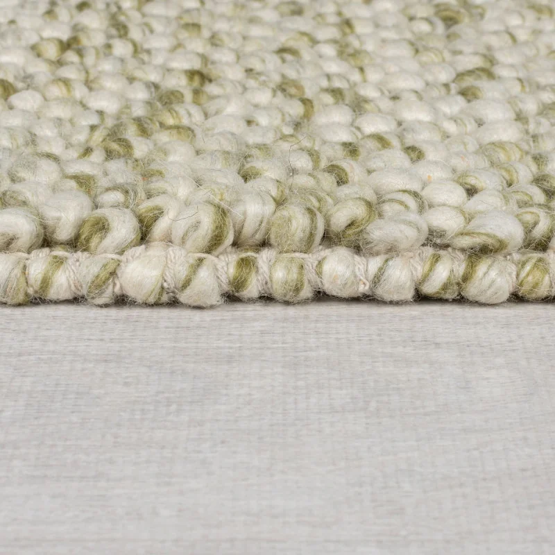 Dywan Wełniany Minerals Zielony – widok ogólny – wzór skandynawski Dywan Wełniany Minerals Zielony – zbliżenie na teksturę – idealny do: do przedpokoju Dywan Wełniany Minerals Zielony – aranżacja w salonie Dywan Wełniany Minerals Zielony – widok z góry Dywan Wełniany Minerals Zielony – detal krawędzi dywanu Dywan Wełniany Minerals Zielony – ułożony na podłodze – pasuje do: do przedpokoju Dywan Wełniany Minerals Zielony – nowoczesny design z bliska – styl skandynawski