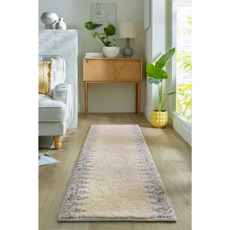 Unikalny design z geometrycznym wzorem i efektem bąbelkowej faktury: Dywan "Minerals Border" zachwyca wyjątkowym, ręcznie tkanym wzorem ramki, który dodaje mu nowoczesnego, a zarazem ponadczasowego charakteru. Geometryczny wzór krawędzi sprawia, że dywan ten będzie idealnym uzupełnieniem wnętrz utrzymanych zarówno w stylu minimalistycznym, jak i bardziej klasycznym. Co więcej, unikalna faktura powierzchni, przypominająca delikatnie bąbelkowaną strukturę, nadaje mu trójwymiarowego wyglądu, który przyciąga wzrok i wprowadza do pomieszczenia ciekawą dynamikę.