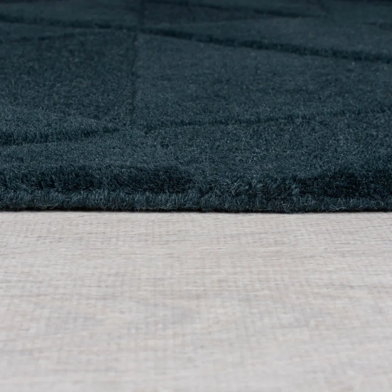 Dywan Wełniany Moderno Shard Teal – widok ogólny – wzór geometryczny Dywan Wełniany Moderno Shard Teal – zbliżenie na teksturę – idealny do: do przedpokoju Dywan Wełniany Moderno Shard Teal – aranżacja w salonie Dywan Wełniany Moderno Shard Teal – widok z góry Dywan Wełniany Moderno Shard Teal – detal krawędzi dywanu