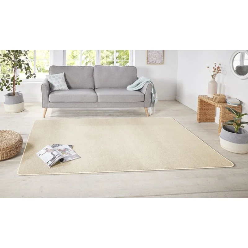Dywan Nasty 101152 kremowy jest bardzo wysokiej jakości oraz wyróżnia się między innymi dużą odpornością na zabrudzenia i zagniecenia, jest łatwy w czyszczeniu, a dzięki neutralnej beżowej barwie pasuje praktycznie wszędzie. Wysokość włosia: 8,5 mm
