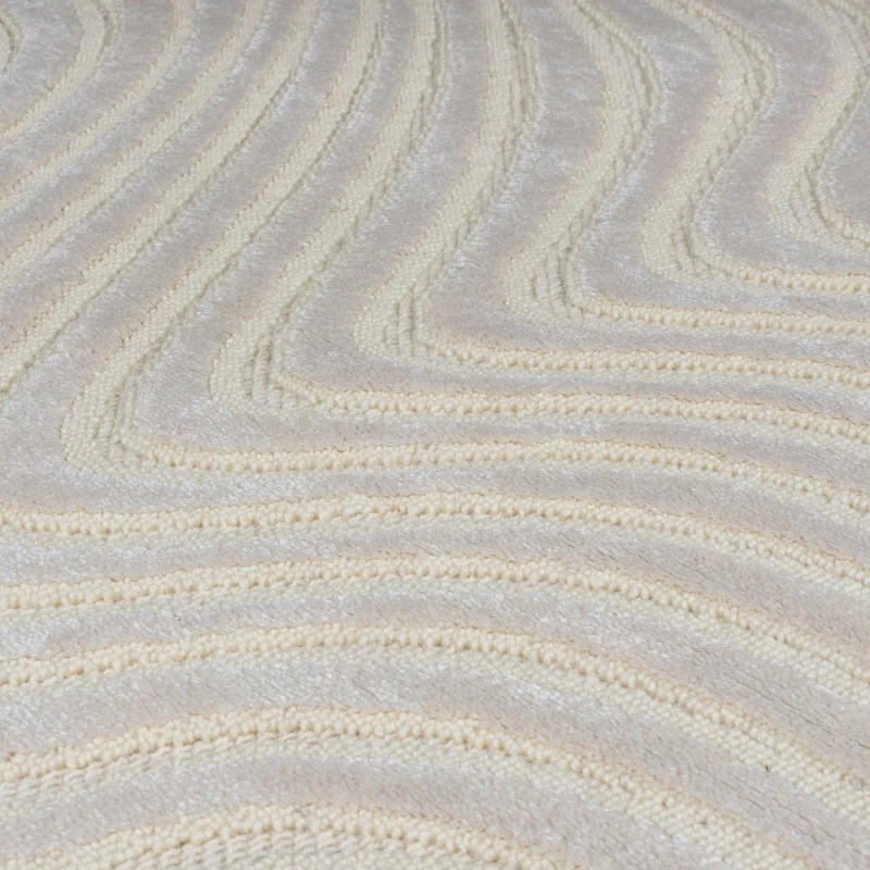 Nadaj swojemu wnętrzu wyjątkowy charakter za pomocą naszego dywanu "Patna Channel Ivory", wykonanego z luksusowej wełny i lśniącej wiskozy. Ten elegancki dywan nie tylko wzbogaci wygląd Twojego pomieszczenia, ale także zapewni przyjemność chodzenia po miękkiej powierzchni.