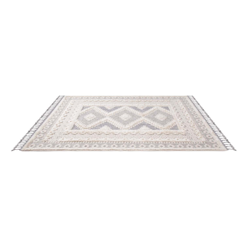 Dywan z frędzlami Cut&Loop Boho-Chic Ramka Valora 7300 Krem Szary