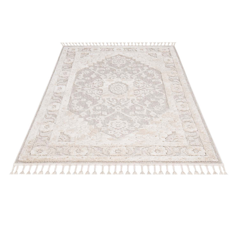 Klasyczny dywan Valora 7320 w kremowym odcieniu to połączenie elegancji i stylu boho. Delikatny wzór, efekt reliefu i ozdobne frędzle sprawiają, że doskonale dopełni każde wnętrze – od salonu po sypialnię.