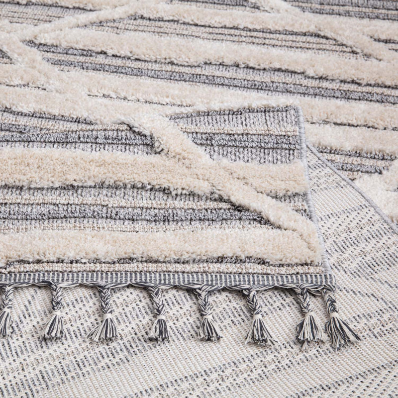 Dywan z frędzlami Cut&Loop Boho-Chic Valora 8100 Szary Krem
