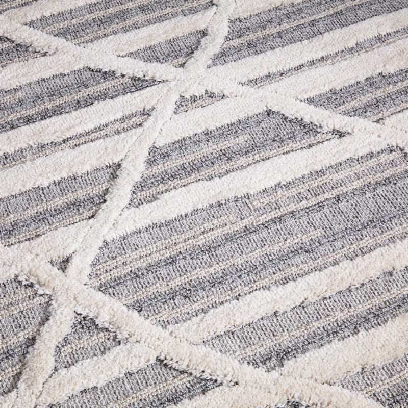 Dzięki technice Cut&Loop, która łączy różne wysokości runa, dywan zyskuje głębię i teksturę. Wykonany z trwałej mieszanki 55% polipropylenu i 45% sizalu, cechuje się dużą odpornością na ścieranie, jest łatwy w pielęgnacji i przystosowany do codziennego użytku.