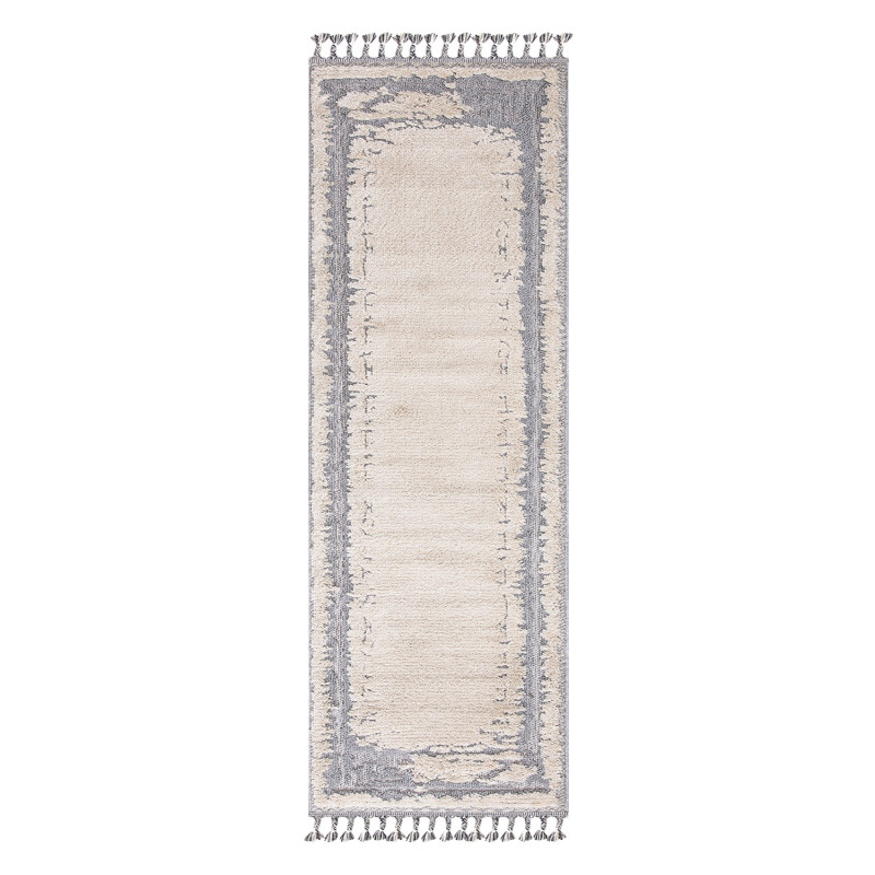 Dywan z frędzlami Valora 9080 to idealny wybór dla miłośników stylu vintage z nowoczesnym akcentem boho-chic. Charakterystyczny wzór z delikatną ramką w kremowo-szarych barwach wprowadza do wnętrza harmonię i przytulność.