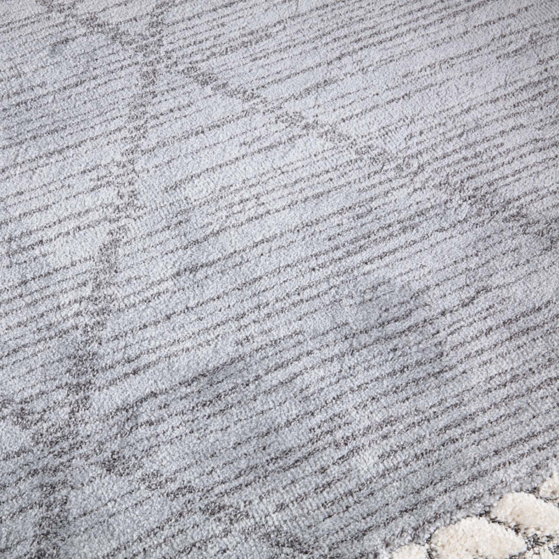 Dywan Valora 9090 z geometrycznym wzorem rombów i subtelną ramką w odcieniach szarości i kremu to stylowy akcent w aranżacji boho-chic, który łączy nowoczesność z klasyką.